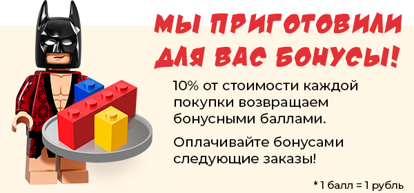 Мы постарались сделать удобным поиск на сайте интернет-магазина нужных конструкторов и оформление покупок. Предлагаем своим клиентам сотрудничество на весьма выгодных условиях. Главная выгода заключается в том, что наши покупатели приобретают лего-наборы по бонусным программам. На некоторые товары цена снижена до 70%.
